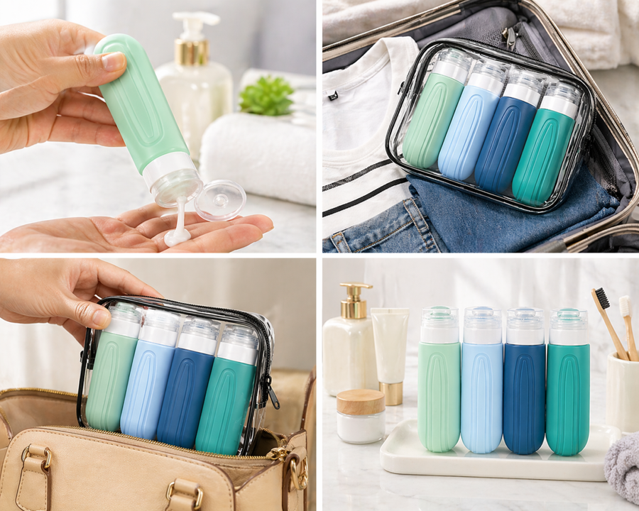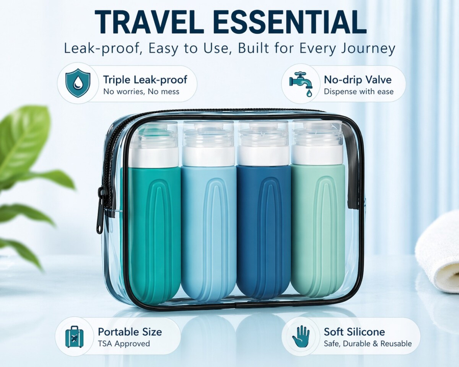 Travel smart and mess-free with this Leak Proof Silicone Travel Bottles Set. Designed for convenience and durability, these compact bottles are TSA-approved (3oz / 89ml), making them perfect for carry-on luggage.