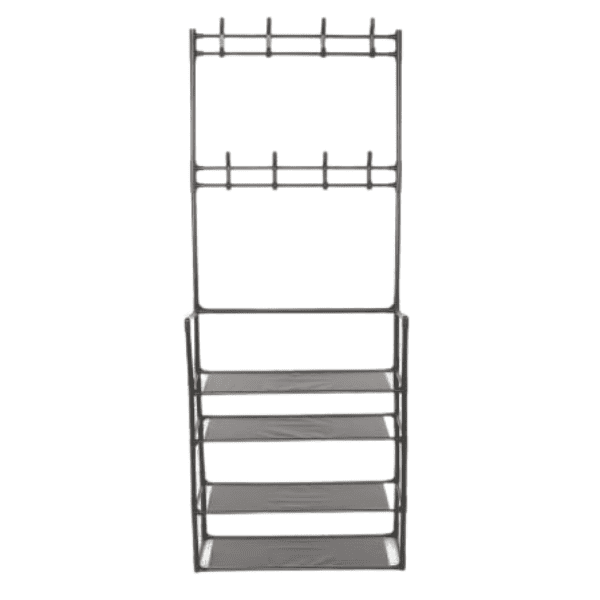 – Big capacity. There are 4 tiers, and there are hooks that can hang many items.