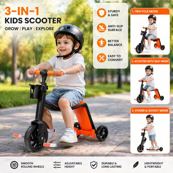 - Product Type: Kids Scooter / Tricycle (3-in-1)