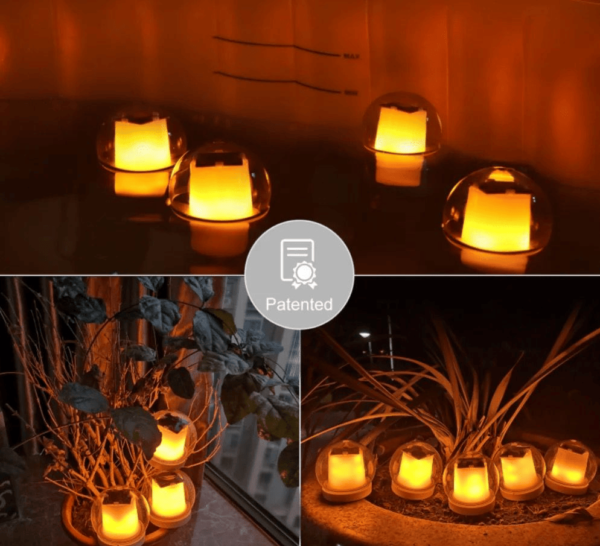 IP68 Waterproof Floating Pool Lights Our solar floating lights adopted updated IP68 waterproof technology, and made from quality vinyl materials, they are fully waterproof, dust-protected and rugged, can withstand sun, rain and freezing temps. The yellow dancing flame creates a warm and safe atmosphere. This solar flame light is the best decoration for outdoor events like a family gathering, party, camping, and festivals. Solar Pool Lights Floating LED Flame Lights pack of 4