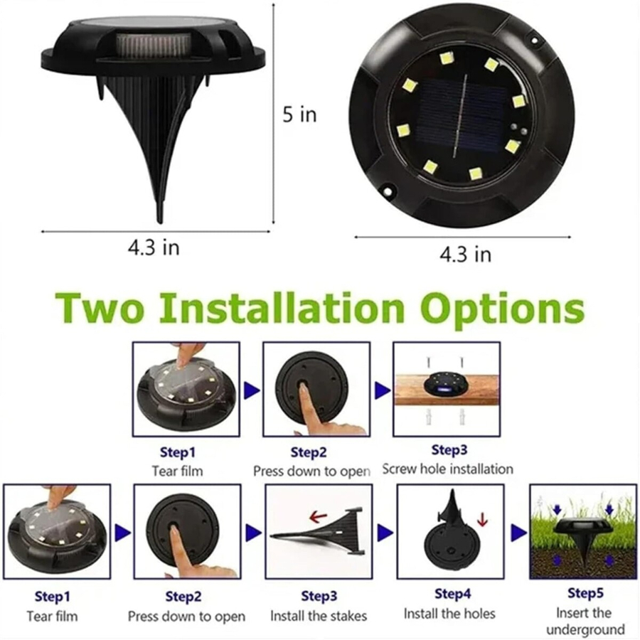 Illuminate your outdoor spaces with the LED Solar Power Disk Light, a practical and energy-efficient lighting solution designed for pathways, gardens, decks, and driveways. This low-profile solar light absorbs sunlight during the day and automatically powers on at night, offering bright and reliable illumination without the need for wiring or electricity.