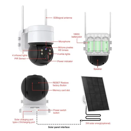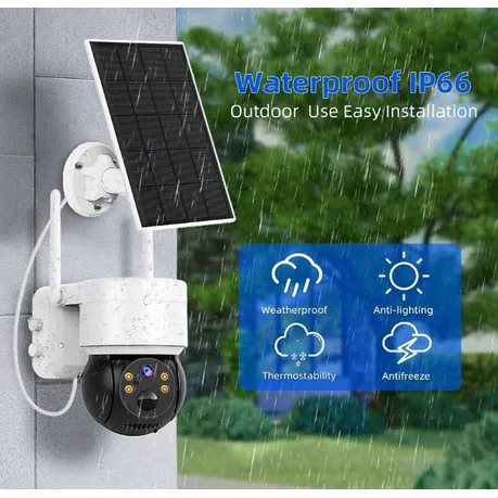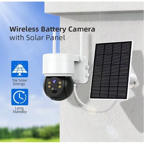 Solar Powered Operation: Built-in high-efficiency solar panel keeps the camera charged continuously, eliminating the need for wires or frequent battery replacements.