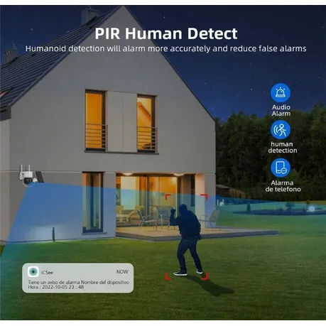 Advanced PIR Human Detection: Intelligent sensor accurately detects human movement, significantly reducing false alarms caused by animals, branches, or shadows.