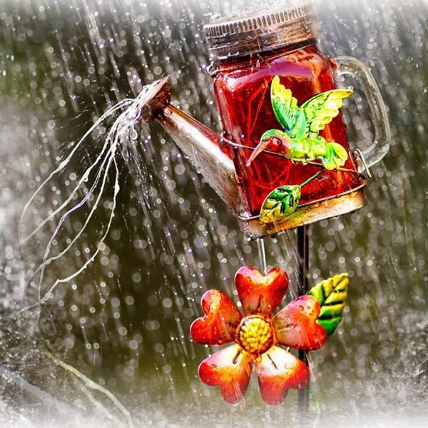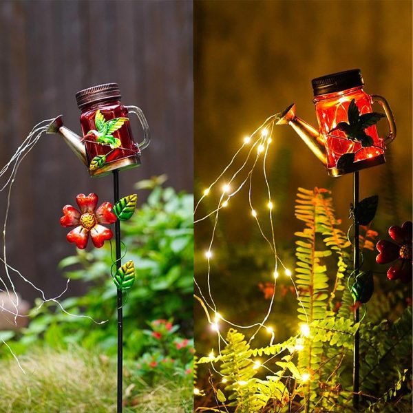 Solar Watering Can Garden Lawn Decorative Lights Humming Bird