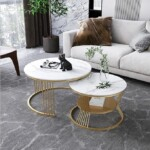 Strong Movable Round Living Room Coffee Table – Nordic Double Layer Design