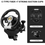 This racing wheel provides an unmatched racing experience and is compatible with XBOX ONE, Xbox series, Playstation 3, Playstation 4, Nintendo Switch, and PC systems to ensure cross-compatibility with top racing games. Add a more realistic touch to your gaming with this steering wheel, feels real as driving and has vibration ability as your gaming. A necessity to all gaming fanatics out there, you do not want to miss out on the experience. Description: – Xbox series, Playstation 3, Playstation 4, Nintendo Switch, and PC systems Support – 180 Degrees Steering Angles – Vibration – Analog Gas And Brake Pads Features: – Manual Shifting Design – Realistic Diving Experience – Large, Optimized Pedal Set – Rubber Grip on Steering to ensure stability Specifications: – Color: Black – Package Weight: 3.10 – Package Dimensions: L- 35.5, W- 32.5, H- 27 What’s in the box 1 x 5-In-1 USB Racing Gaming Steering Wheel And Gear, Pedal Set