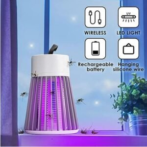 – This solar mosquito zapper is designed to be portable and can be used indoors, outdoors, or on a patio while camping. Additionally, the zapper can be easily hung from the top’s hanging hook or placed on a picnic table. USB Rechargeable LED Electric Mosquito Killer Lamp