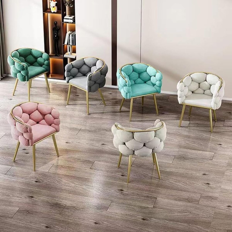 Our upholstered accent chair is made from soft and durable materials soft fleece fabric, Not only vanity chair give you a cozy sitting experience but also have a solid strong load. What distinguishes this accent armchair is its soft fleece fabric. bubble chair Selection of high-resilience sponge, full and soft without collapsing. The small footprint of this arm chair won’t take up much space in your room yet its curved silhouette can still round out your seating group in streamlined style. Ideal for living rooms, dining rooms, bedrooms and other small nooks. Thoughtfully designed, the flared backrest allows you to rest your head on while lounging. vanity chair The padded, round armrest perfectly lines up with your arms that makes you more relaxed when sitting. vanity chair Suitable for every environment, perfect for living room, bedroom, office, reception area, dorm, also can as vanity chair or a gift for ladies.
