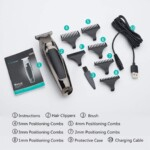 Set Content 1 Hair Clippers for Men Professional, 5 different lengths of precision positioning combs 1, 2, 3, 4, 5mm, 1 cleaning brush, 1 fast charging cable, 1 blade head protection cover.