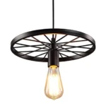 Crafted from durable, high-quality metal, the spoked wheel frame supports standard E27 bulbs, allowing you to choose warm or cool tones to match your aesthetic. Its adjustable hanging cord ensures versatile installation at various ceiling heights, giving you full control over the ambiance. This pendant light is both decorative and functional—perfect for homeowners, decorators and businesses seeking a unique lighting statement.