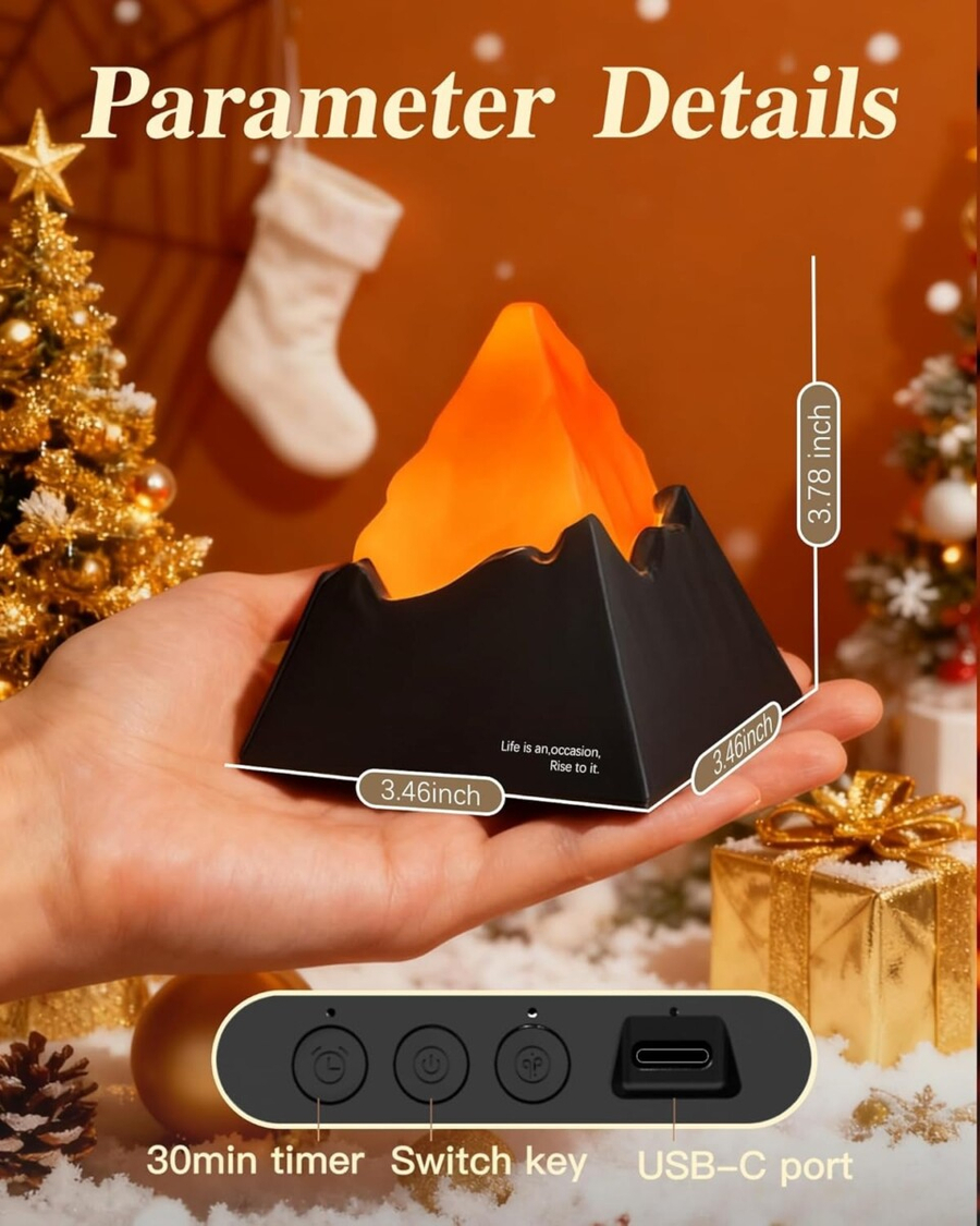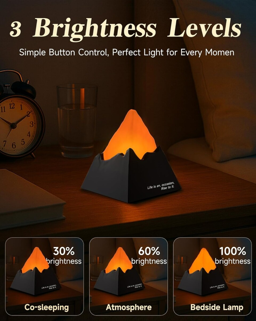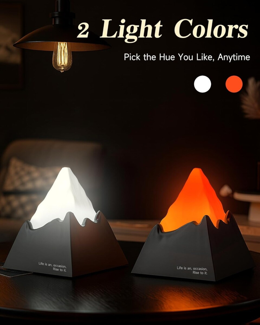 - Dimmable Night Light: The volcano night light offers 2 color options and 3 brightness levels.White light resembles morning mist covering the mountains, while warm light mimics the glowing sunset over burning hills. It not only creates a comfortable and unique ambient space but also acts as a warm and creative decorative highlight in your bedroom