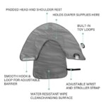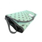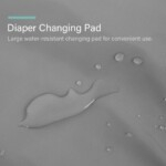 The surface can be easily wiped clean and is waterproof. Only to be hand washed and air dried outside. Do not iron or use concentrated bleach. This is portable, waterproof, padding and it is very durable. Included are 2 links for hanging small toys and a wrist/stroller strap. Sides do fold around the child’s lower chest to form an adjustable redirection barrier. The barrier adapts to a child’s size up to a lower chest diameter of 22″. Diaper supplies can be folded inside.
