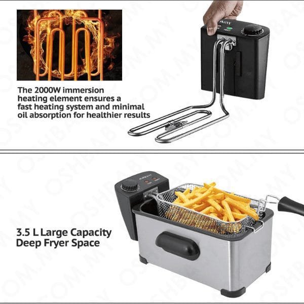 The fryer also features durable stainless steel housing, which is accompanied by an enamel-coated pan that makes for easy cleaning and maintenance.