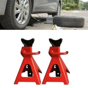 Durable yet compact and lightweight, the steel jack stands can be stored in the garage or easily kept in the trunk along with other roadside equipment for easy access