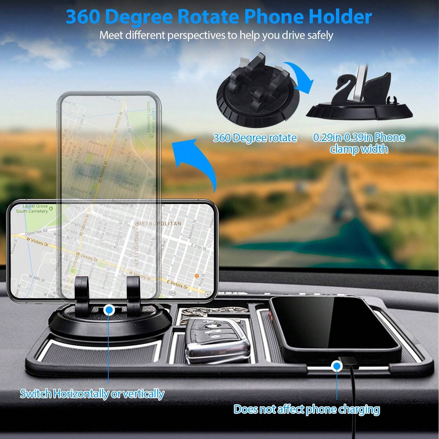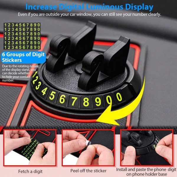 Non-slip storage mat, 360° rotatable universal phone holder, temporary phone number display, and built-in aromatherapy stick holders.