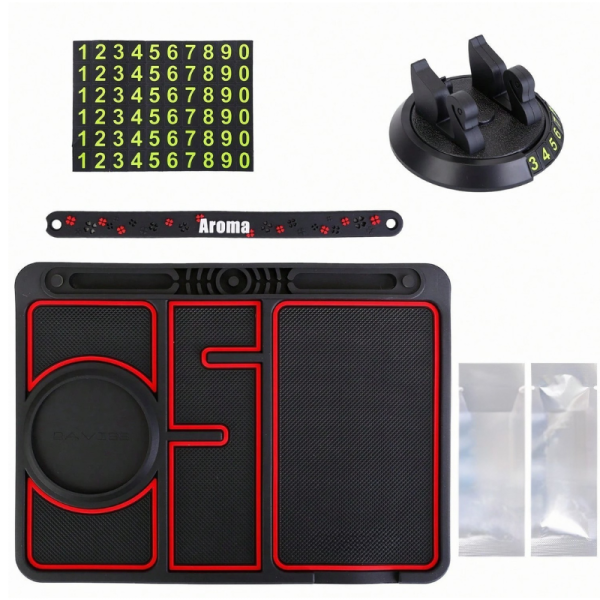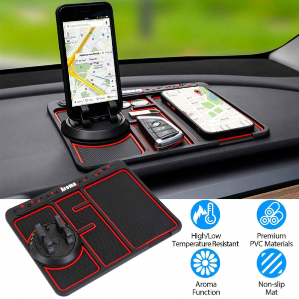 Keep your dashboard neat and your essentials within easy reach with this versatile 4-in-1 Car Dashboard Non-Slip Mat. Whether you’re commuting, travelling, or just running daily errands, this multifunctional mat is designed to offer secure phone placement, a temporary contact number display, built-in aromatherapy, and stable, non-slip storage – all without the need for installation or adhesives.