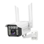 1080P HD WiFi IP 1080P high definition video and picture convey very clear and accurate live scenes, the living stream can be accessed through iOS / Android mobile phones (Note: The camera works with 2.4G WiFi, no 5G network) -Motion Detection & Two Way Audio When Motion Detects Alerts or Detect The video will be sent to your phone in real-time, you may use it outdoors to communicate smoothly and clearly with people near the camera via APP and scare the intruders. -Clear Colorful Vision Equipped 8pcs LED lights (4pcs White LED and 4pcs IR LEDs), -even pitch dark with clearer colorful night. -Vision distance is up to 15-20 meters, giving you a super night vision experience. IP66 waterproof and dustproof level IP66 excellent waterproof and dustproof function -best for outdoor use quality material to ensure safe use temperature range 14 A F to -113 A F (-10 A C to 45 A C) whether it’s rain or shine, it’s tough enough to stand up bad weather. -Storage Way SD and Cloud Storage have and, store all 24 hours / 7 days surveillance records Security encryption protocol to protect your privacy. -Multi-Family Sharing Supports multiple users to view videos simultaneously and supports camera devices in one app. -AP connection MODE If the camera disconnects when the network is down, don’t -worry, the camera has a built-in AP WIFI, you can still connect to the AP. WiFi works for your phone within 20 meters. -To set up with step-by-step instructions via free App to remotely access your phone/mobile Power adapter: DC 12V / 2A -Image Sensor: 1/3 “CMOS Sensor -Lens: 2.8mm -Resolution: 1920 * 1080P -Viewing angle: 160 A wide angle -IR-CUT filter: automatically -Infrared: IR LED -Minimum illumination: 4500mV / LUX-S -Infrared Distance: 15-20M -2-Way Audio: Support -Compression format: H.264 / H.265 -Connection method: WiFi and RJ-45 LAN connection. -AP mode: support -Wireless standard: 2.4GHz, 802 .11b / g / n (5G is not supported) -Storage: Cloud Storage (Extra Charge) / SD Card (not included) -The texture of the material: ABS -Color: white -Power consumption: <24W -Camera size: 162 * 75 * 68mm -Camera weight: 450g What’s in the box -1 x WIFI IP Camera -1 x (100cm) -1 x power adapter -1 x set of installation screws -1 x user manual