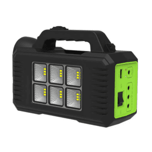 It comes with LED External Light bulbs that can be utilized during periods of load shedding. The portable universal solar system has a lead-acid battery with a capacity of 4000mAh, that can be charged either with a USB port or a solar panel.