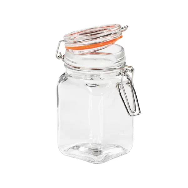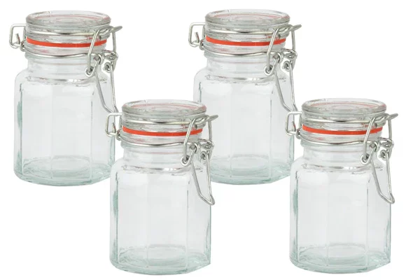 – Spices Jar Round With Embossed, glass spice jar with gold clip.