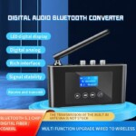Product Features: -Can be used as a Digital to Analog Audio Converter. It is designed for either home or professional audio switching. It converts SPDIF Toslink digital/Coaxial audio signals to analog 2RCA L/R audio and 3.5mm AUX and available for connection to an external device such as amplifier via standard RCA-style/3.5MM aux jacks. -Multi-function Bluetooth transmitter & receiver, In TX Mode: Transfer your music from a TV, CD player, Ipod, laptop to a Bluetooth headset or stereo; In RX Mode: will transfer the music in your mobile phone or computer to the audio, so that you can enjoy HIFI CD freely The sound quality. -Wireless Music Streaming: Stereo stream music to non-Bluetooth headphones and speakers. -Super Stable Connection: Our Bluetooth audio adapter is fitted with a Bluetooth 5.0 chip for steady pairing, fast transmission and a wide signal range (33 feet). With the 3.5mm AUX port or RCA port, it can be connected to non-Bluetooth car audio systems, home stereo, wired headphone/speaker, Amplifier/Home Theater. etc. Then you can enjoy wireless Hi-fi music streaming! -Connect two devices: Support to connect with 3.5mm audio port and 2 RCA audio port at the same time. -Auto-Connect: This Bluetooth receiver will automatically connect to the last paired Bluetooth device when you turn it on the next time. -With Bluetooth antenna, So the sound transmission is more stable, no-noise, and more synchronized/low latency. -Upgrade-KEY Button to TOUCH SCREEN : Next song/Volume Up, Previous Song/Volume Down, Multifunction Button(MFB) -With LCD screen display , it’s can be show mode status and Bluetooth select ; more clear . -Note: No built in battery, So POWERED BY USB CHARGING. -In Bluetooth transmitter mode, its support 3.5mm/digital fiber / coaxial /3.5mm input, compatible for most of devices -Upgraded to Aluminum alloy appearance, more beautiful -Supports volume adjustment and song switching. Whats in the box: 1 x T38 Bluetooth Digital to Analogue Receiver & Transmitter 1 x 3.5mm AUX Audio Cable 1 x Optical Cable 1 x Charging Cable 1 x RCA audio cable 1 x User Manual